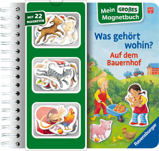 Auf dem Bauernhof ist was los! Wer füttert die Schweine, wo wohnen die Hasen und warum ist der Tierarzt auf dem Bauernhof? 22 verschiedene Magnete ergänzen die Szenen. Das motiviert Kinder zum richtigen Einsetzen und zum freien Spiel. Auf dem Bauernhof gibt es so viel zu entdecken! Sofie bringt den Schweinen das Futter, Ben und Jonas helfen im Gemüsegarten. Und wer kümmert sich um die Hühner und Kaninchen? Kleinkinder können hier 22 Magnete den passenden Szenen zuordnen oder frei mit ihnen auf den magnetischen Buchseiten spielen. Das macht Spaß und animiert zum Geschichten erzählen. Die Magnete haften an vielen magnetischen Flächen und können zum Beispiel an der Heizung oder dem Kühlschrank zum Spielen eingesetzt werden.