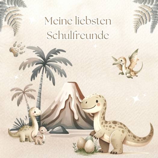 Freundebuch "LIEBSTE SCHULFREUNDE - Dino-Abenteuer"Erlebe das Abenteuer Schulzeit mit deinem persönlichen Freundebuch im Dino-Motto! Dieses wunderschöne Ausfüllbuch ist der ideale Begleiter für Schulfreunde und lässt alle besonderen Momente der Schulzeit lebendig werden. Perfekt für kleine Dinosaurier-Fans, die ihre Freundschaften und Erinnerungen auf eine kreative Weise festhalten möchten!Das "Liebste Schulfreunde"-Buch enthält:2 Ausfüllseiten für das Kind: Dein Kind kann sich hier selbst vorstellen - mit Platz für Lieblingshobbys, besondere Eigenschaften und eine kleine persönliche Nachricht.26 Doppelseiten für Freunde: Jede Seite ist für einen Freund oder eine Freundin reserviert, um spannende Fragen zu beantworten - von Lieblingsdinosaurier bis hin zu gemeinsamen Erlebnissen. So entsteht eine wunderbare Sammlung von Erinnerungen an die Schulkameraden.5 Doppelseiten für Erwachsene: Ob Lieblingslehrer, Betreuer oder besondere Bezugspersonen - hier können Erwachsene ihre Gedanken und Wünsche hinterlassen und so das Freundebuch noch persönlicher machen.Mit seinem fröhlichen Dino-Thema ist das Buch nicht nur ein kreatives Projekt für jedes Kind, sondern auch ein tolles Andenken an die ersten Jahre der Schulzeit. Es ist das perfekte Geschenk zum Schuljahresbeginn oder -ende und eine schöne Erinnerung an die wertvollen Freundschaften, die während der Schulzeit entstehen.