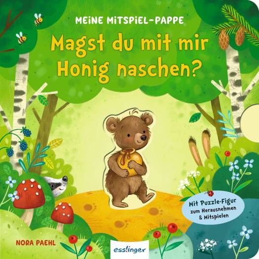 Der kleine Bär mag Honig sehr. Wer wohl heute gemeinsam mit ihm nascht? Kinder ab 18 Monaten bewegen die Bären-Figur spielend durch den Wald und begegnen dabei den beliebtesten Tieren. Der Hase knabbert am liebsten grünen Klee, das Eichhörnchen sammelt Nüsse, der Dachs lässt sich Pilze schmecken und das Rehkitz zupft zarte Blätter von den Ästen. Nur einer schleckt Honig auch ganz besonders gerne. Na klar, der große Bär!