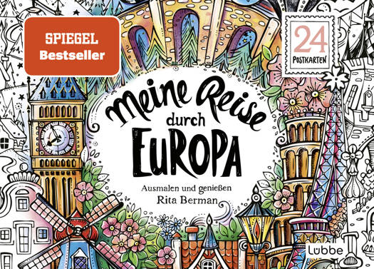Die Illustratorin Rita Berman hat mit ihren Ausmalbüchern »Spaziergang durch die Jahreszeiten« eine große Fangemeinde gewonnen. Jetzt entführt sie an Sehnsuchtsorte in ganz Europa, malend können so die romantischsten Ecken von Paris, verwinkelte Gassen italienischer Dörfer und die Schönheit Portugals erkundet werden ... Lassen Sie Ihre Phantasie Urlaub machen und entdecken Sie die zwanzig schönsten Ausmalmotive jetzt im Postkartenformat.