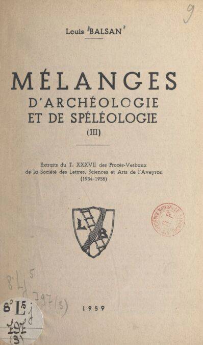 Mélanges d'archéologie et de spéléologie (3) E-BOOK