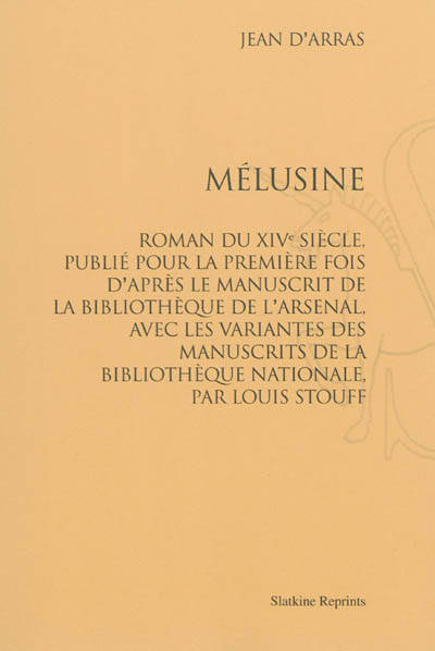 Manquant à sa parole, la fée Mélusine a été surprise par son mari sous sa forme serpente. Ce roman est à la fois un conte de fées, un roman d'aventures et un roman historique qui mêle récits de croisades, chroniques historiques, livre d'éducation des princes, épisodes épiques et féeriques. Le manuscrit de la Bibliothèque de l'Arsenal est considéré comme la copie la plus ancienne et la plus fidèle.