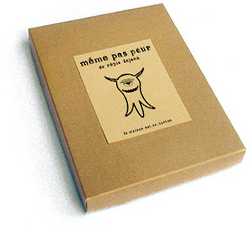 Une série d’illustrations de Régis Lejonc sur le thème des peurs issues de la culture populaire (vampire, fantôme, squelette, sorcière, yéti, diable, loup-garou, zombi, ogre, alien). Imprimées en quadrichromie sur un papier d’art. Tirage limité à 400 exemplaires. 11 images + un justificatif numéroté et signé par l’auteur. Présentées dans une petite boîte en carton.