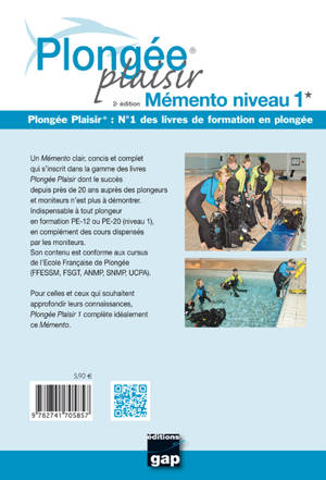 Ce mémento reprend les notions essentielles à maîtriser pour plonger en toute sécurité : gestion de l'équipement, mise à l'eau, palmage, apnée, remontée, etc. Il comprend également un test de connaissances.