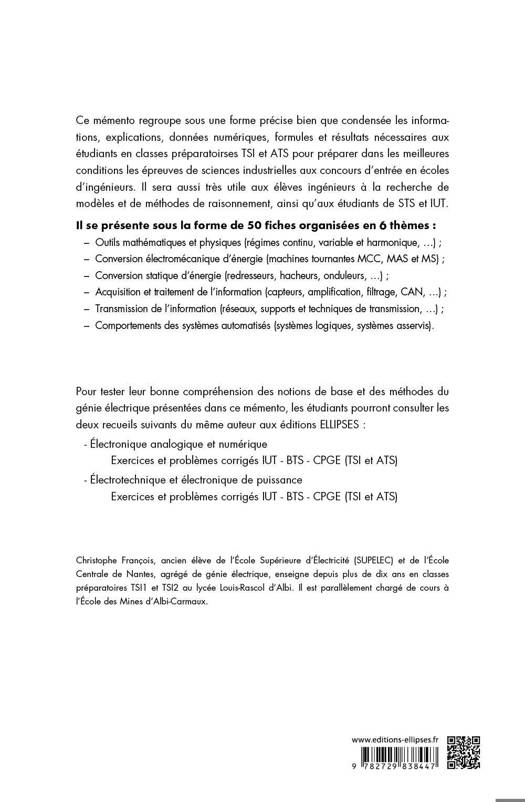 Pour tester leur bonne compréhension des notions de base et des méthodes du génie électrique présentées dans ce mémento, les étudiants pourront consulter les deux recueils suivants du même auteur aux éditions ELLIPSES :