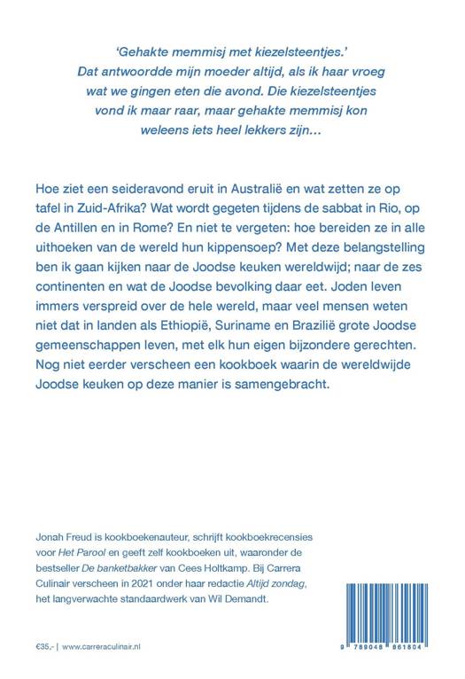 Hoe ziet een seideravond eruit in Australië en wat zetten ze op tafel in Zuid-Afrika? Wat wordt gegeten tijdens de sabbat in Rio, op de Antillen en in Rome? En niet te vergeten: hoe bereiden ze in alle uithoeken van de wereld hun kippensoep? Met deze belangstelling ben ik gaan kijken naar de Joodse keuken wereldwijd; naar de zes continenten en wat de Joodse bevolking daar eet. Joden leven immers verspreid over de hele wereld, maar veel mensen weten niet dat in landen als Ethiopië, Suriname en Brazilië grote Joodse gemeenschappen leven, met elk hun eigen gerechten.
