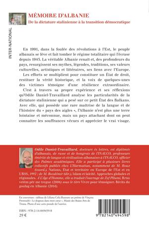En 1991, dans la foulée des révolutions à l'Est, le peuple albanais se lève et fait tomber le régime totalitaire qui l'écrase depuis 1945. La véritable Albanie renaît et, des profondeurs du pays, resurgissent ses mythes, légendes, traditions, ses valeurs culturelles, artistiques et littéraires, ses liens avec l'Europe. Les efforts se multiplient pour constituer un État de droit, restituer la vérité historique, et la voix de quelques-unes des victimes témoigne d'une résilience extraordinaire. C'est à travers sa propre expérience et ses réflexions qu'Odile Daniel-Travaillard analyse les particularités de la dictature stalinienne qui a pesé sur ce petit État des Balkans. Avec elle, qui possède une rare maîtrise de la langue et de l'histoire du pays des aigles, l'Albanie n'est plus une terre lointaine et méconnue, mais un pays attachant dont on peut connaître les souffrances vécues et apprécier le vrai visage.