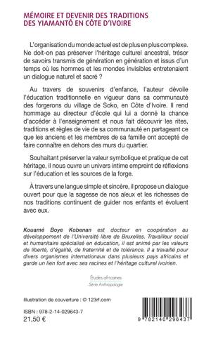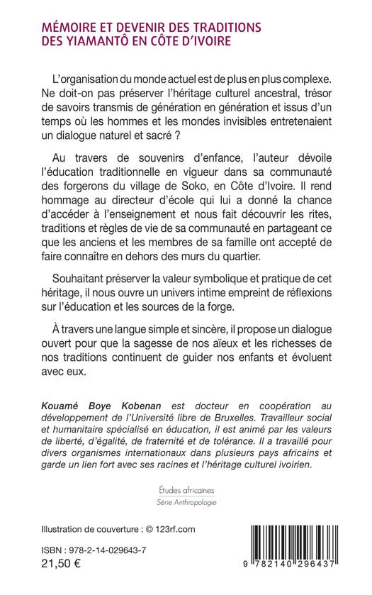 L'organisation du monde actuel est de plus en plus complexe. Ne doit-on pas préserver l'héritage culturel ancestral, trésor de savoirs transmis de génération en génération et issus d'un temps où les hommes et les mondes invisibles entretenaient un dialogue naturel et sacré ? Au travers de souvenirs d'enfance, l'auteur dévoile l'éducation traditionnelle en vigueur dans sa communauté des forgerons du village de Soko, en Côte d'Ivoire. Souhaitant préserver la valeur symbolique et pratique de cet héritage, il nous ouvre un univers intime empreint de réflexions sur l'éducation et les sources de la forge.