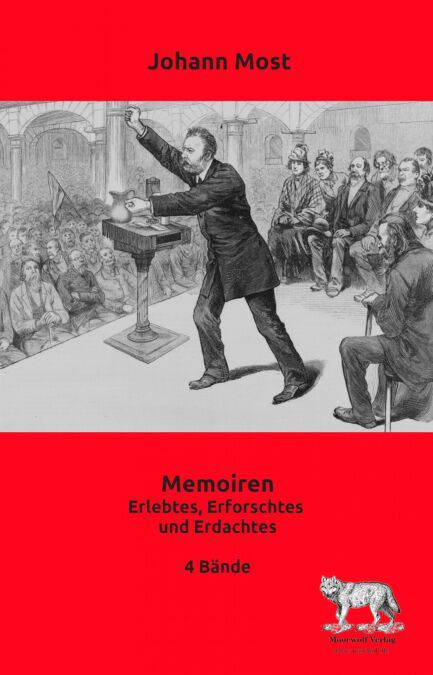 Johann Most, gelernter Buchbinder wurde als Agitator und Arbeiterführer bekannt. Er wurde als Sozialdemokrat in den Reichstag gewählt, wurde später Kommunist und noch später Anarchist. Er war Herausgeber einiger sozialistischen Zeitungen. Er wurde häufig verurteilt und musste einige Male in das Gefängnis u.a. wegen Hochverrat und Gotteslästerung. Er siedelte nach England über um der Sozialistenvervolgung zu entgehen. Später flüchtete er auch aus England in die USA. Dort wurden seine humorvoll geschriebenen Memoiren in 4 Bänden zuerst veröffentlicht.