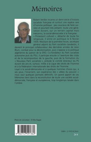 Robert Verdier incarne un demi-siècle d'histoire socialiste française et surtout une espèce rare d'homme politique: peu soucieux de faire carrière et pourtant très présent, toute une génération durant, sur un terrain capital mais méconnu, la social-démocratie à la française. Loyal à la social-démocratie et à quelques hommes choisis qui, à ses yeux, l'incarnent, son expérience des "allées du pouvoir" nous vaut quelques portraits définitifs. Un grand apport de ces Mémoires tient dans la reconstitution de toute une société social-démocrate trop longtemps laissée dans l'ombre.