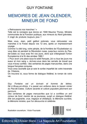 « Retroussons nos manches ! » Telle est la consigne que donne en 1948 Maurice Thorez, Ministre communiste de la Fonction publique, aux mineurs du Nord grévistes. Il s'agit de produire toujours plus ! Jean Olender, petit galibot polonais auquel s'adresse l'auteur, retroussez déjà ses manches à la Fosse depuis ses 12 ans, après un impressionnant voyage. Un véritable périple qui l'a mené de la frontière de l'Ouzbékistan jusqu'aux corons du Pas-de-Calais, où il a fini ses jours alors que s'élargissait l'Union Européenne à la fin des années 1980 ! « Pour avoir une place sous le soleil français, j'ai vu tous les jours ma sueur et mon sang », écrit Jean Olender dans les carnets de travail qu'il a confiés, avant de mourir, à son jeune ami Guy Fontaine : des centaines de pages manuscrites, dans une langue française conquise. Cet ouvrage proposer de trouver ici, sous forme de dialogue théâtral, le roman de la vie d'un mineur de fond témoignant de la Mémoire minière du nord de la France : Jean Olender.