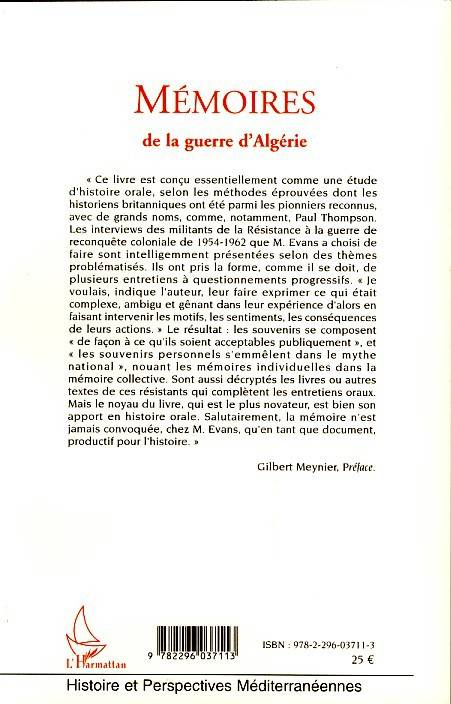 Ce livre est conçu essentiellement comme une étude d'histoire orale. L'auteur a choisi de réaliser des interviews de militants de la Résistance à la guerre de reconquête coloniale de 1954-1962. Ils ont pris la forme de plusieurs entretiens à questionnements progressifs, ce qui a pour résultat d'entremêler les souvenirs personnels dans le mythe national. Sont aussi décryptés les livres ou autres textes de ces résistants qui complètent les entretiens oraux.