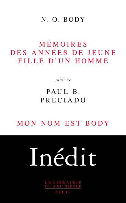 Plus d’un siècle après, Paul B. Preciado reçoit ces Mémoires comme une bouteille à la mer, et écrit un hommage à Karl M. Baer et aux survivant.e.s dissident.e.s de l’assignation binaire normative. Mon nom est Body, inédit publié en diptyque avec les Mémoires, est une nouvelle histoire de la sexualité avec et contre Foucault, une généalogie politique du nom propre et un cri pour une abolition des systèmes binaires d’assignation sexuelle et du genre à la naissance.