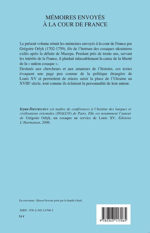 Le présent volume réunit les mémoires envoyés à la cour de France par Gégoire Orlyk, fils de l'hetman des cosaques ukrainiens exilés après la défaite de Mazepa. Pendant près de trente ans, il a servi la France tout en plaidant la liberté de la nation cosaque. Cet ouvrage aborde une page peu connue de la politique étrangère de Louis XV et permet de mieux saisir la place de l'Ukraine au XVIIIe.