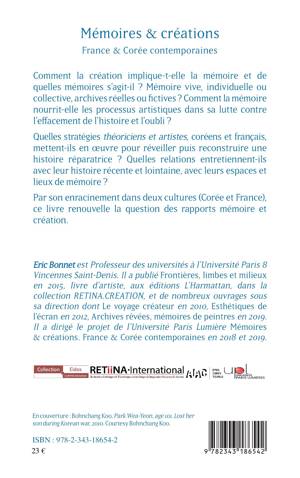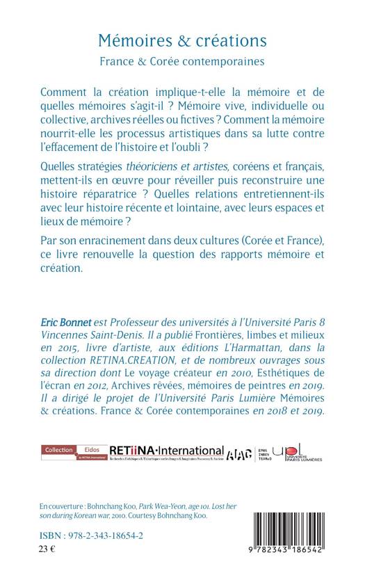 Comment la création implique-t-elle la mémoire et de quelles mémoires s’agit-il ? Mémoire vive, individuelle ou collective, archives réelles ou fictives ? Comment la mémoire nourrit-elle les processus artistiques dans sa lutte contre l’effacement de l’histoire et l’oubli ? Quelles stratégies théoriciens et artistes, coréens et français, mettent-ils en oeuvre pour réveiller et reconstruire une histoire réparatrice ? Quelles relations entretiennent-ils avec leur histoire et leurs lieux de mémoire ? Par son enracinement dans deux cultures (Corée et France), cet ouvrage renouvelle la question des rapports mémoire et création.