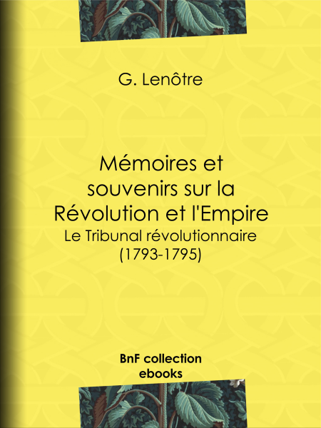 BnF collection ebooks - "Je n'ai pas entreprise ce livre pour redire, dans son détail quotidien, la néfaste histoire du tribunal révolutionnaire. J'ai tenté de reconstituer l'aspect et la vie du Palais durant les mauvais jours de la Révolution, de silhouetter le petit groupe de déclassés qui, à cette époque, s'emparèrent, en intrus, de l'antique demeure du Parlement et assumèrent la tâche stigmatisante d'appliquer les lois impitoyables qu'extorqua la Terreur à la Convention Nationale."