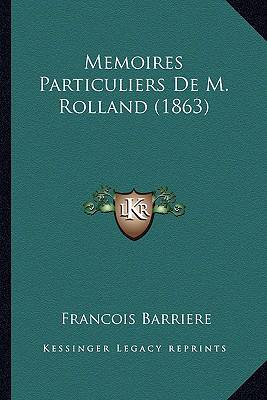 M�����moires Particuliers De M. Rolland (1863) est un livre �����crit par Barri�����re, Fran�����ois. Ce livre est une collection de m�����moires de M. Rolland, qui a v�����cu pendant la R�����volution fran�����aise. Les m�����moires d�����crivent la vie de M. Rolland et de sa famille pendant cette p�����riode tumultueuse de l'histoire fran�����aise. Le livre est divis����� en plusieurs chapitres, chacun d'eux couvrant une p�����riode sp�����cifique de la vie de M. Rolland. Les chapitres sont remplis de d�����tails sur la vie quotidienne pendant la R�����volution, y compris les �����v�����nements politiques, les changements sociaux et les r�����percussions sur la vie des gens ordinaires. Le livre est �����crit dans un style clair et facile ������ comprendre, ce qui le rend accessible aux lecteurs de tous niveaux. Les m�����moires de M. Rolland offrent un aper�����u fascinant de la vie pendant la R�����volution fran�����aise, et sont un t�����moignage important de cette p�����riode de l'histoire.This Book Is In French.This scarce antiquarian book is a facsimile reprint of the old original and may contain some imperfections such as library marks and notations. Because we believe this work is culturally important, we have made it available as part of our commitment for protecting, preserving, and promoting the world's literature in affordable, high quality, modern editions, that are true to their original work.