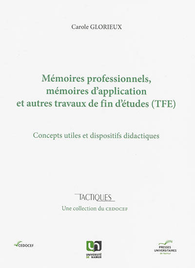 Une attention particulière est accordée au mémoire d'application, un genre de mémoire de fin d'études original qui concilie écriture/pratique (pré)professionnelle, écriture réflexive et écriture scientifique. Professionnalisation, réflexivité et scientificité apparaissent d'ailleurs comme des concepts phares qui sont dépliés ici pour éclairer la compréhension de tous les mémoires à vocation professionnalisante.