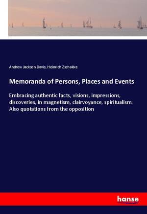 Memoranda of Persons, Places and Events - Embracing authentic facts, visions, impressions, discoveries, in magnetism, clairvoyance, spiritualism. Also quotations from the opposition is an unchanged, high-quality reprint of the original edition of 1868. Hansebooks is editor of the literature on different topic areas such as research and science, travel and expeditions, cooking and nutrition, medicine, and other genres. As a publisher we focus on the preservation of historical literature. Many works of historical writers and scientists are available today as antiques only. Hansebooks newly publishes these books and contributes to the preservation of literature which has become rare and historical knowledge for the future.