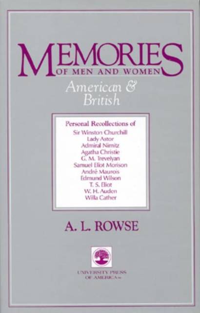 This collection of intimate portraits of eleven famous men and women originally published by Eyre Methuen, Ltd. in 1980, is based on Rowse's own friendship with his subjects, all of whom have made significant contributions to modern literature or politics.