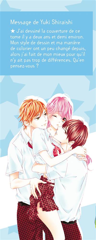 Yori, monté sur scène pour son amie d'enfance Shizuku, se fait remarquer pour ses talents d'acteur. Il va même jouer dans un film avec elle et Subaru. Mais tandis que nos trois héros touchent leur rêve du doigt, leur relation triangulaire évolue. Qu'est-ce que Shizuku va répondre aux déclarations de Yori et Subaru ?