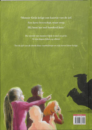 Een poëtisch prentenboek over een onbeantwoorde liefde en de zoektocht naar een plek waar je thuishoort (5+). In de klas spelen de kinderen. Meneer Grijs laat ze maar doen en kijkt uit het raam. Waar blijft die regen toch vandaan komen? Dan ziet hij haar. Ze loopt over het schoolplein. Ze is de juf van de derde klas. Wat beweegt ze mooi, denkt Meneer Grijs. Het leven van de onhandige Meneer Grijs is grijs en saai. Alle dagen lijken op elkaar. Dat verandert wanneer hij de juf van de derde klas ziet. Opeens komt er kleur in zijn leven...
