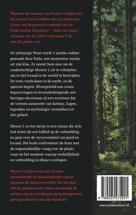 De achtjarige Wout wordt s nachts wakker gemaakt door Katja, een mysterieus meisje uit zijn klas. Ze neemt hem mee om de raadselachtige Meneer L. uit te schakelen om zo het kwaad in de wereld te bestrijden. De twee verdwijnen in de nacht, en de queeste begint. Blootgesteld aan zware beproevingen en levensbedreigende ontberingen doorstaan zij een avontuur dat de vorm aanneemt van fantasy. Sagen, legenden en mythologie versmelten tot één geheel.