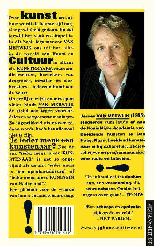 Over kunst en cultuur wordt de laatste tijd nogal ingewikkeld gedaan. En dat terwijl het vaak zo simpel is. In dit boek legt meneer Van Merwijk ons uit hoe alles in de wereld van Kunst en Cultuur in elkaar zit. Kunstenaars, museumdirecteuren, bezoekers van drag car races, tomaten en sierheesters iedereen komt aan de beurt.