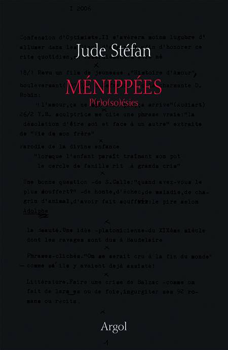 Ménippées est une sorte de journal de pensées, de lectures et d’écritures : des p(r)o(so)ésies, le livre unique d’un poète et d’un prosateur singulier.