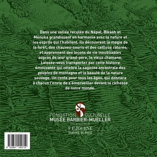 Dans une vallée reculée du Népal, Bikash et Ménuka grandissent en harmonie avec la nature et les esprits qui l'habitent. Ils découvrent la magie de la forêt, des chauves-souris et des cailloux colorés, et apprennent des leçons de vie inoubliables auprès de leur grand-père, le vieux chamane. Laissez-vous transporter par cette histoire émouvante qui célèbre la sagesse ancestrale des peuples de montagne et la beauté de la nature sauvage. Un conte pour tous les âges, qui donnera à chacun l'envie de s'émerveiller devant la richesse de notre monde.