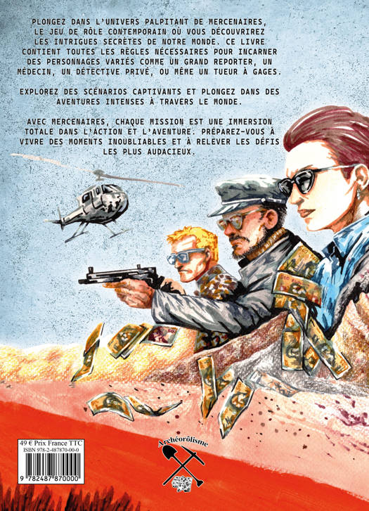 Plongez dans l’univers palpitant de mercenaires, le jeu de rôle contemporain où vous découvrirez les intrigues secrètes de notre monde. Ce livre contient toutes les règles nécessaires pour incarner des personnages variés comme un grand reporter, un médecin, un détective privé, ou même un tueur à gages. Explorez des scénarios captivants et plongez dans des aventures intenses à travers le monde. Avec mercenaires, chaque mission est une immersion totale dans l’action et l’aventure. Préparez-vous à vivre des moments inoubliables et à relever les défis les plus audacieux.