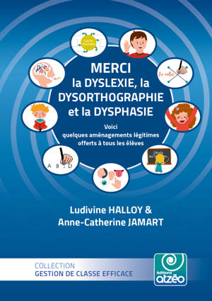 Ludivine HALLOY et Anne-Catherine JAMART mettent leur expérience pratique ET théorique au service de l’ensemble de la classe. Plutôt que d’insister sur des traitements particuliers pour des élèves porteurs d’un trouble de la dysLEXIE, la dysORTHOGRAPHIE et la DYSPHASIE, l’enseignant offre ainsi un environnement pédagogique de qualité, des aménagements légitimes pour quelques-uns au bénéfice de TOUS ! Cela permet d’affirmer : « MERCI les DYS ».