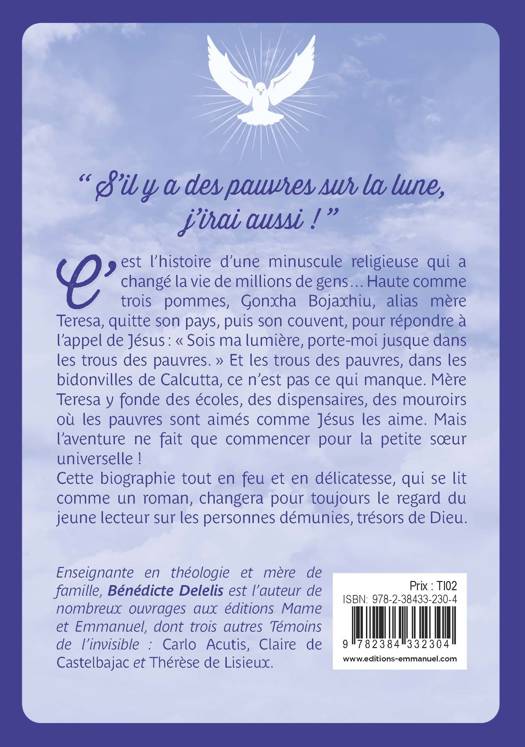 Le livre idéal pour découvrir la vie et la spiritualité d’une des plus grandes femmes de notre époque : une minuscule religieuse qui, par amour pour Jésus, a remué ciel et terre afin de servir, aimer et faire aimer les pauvres. Dans cette biographie qui se lit comme un roman, Bénédicte Delelis, avec un art puissant de la narration et une plume enchantée, propose aux jeunes une véritable rencontre avec cette sainte si attachante. Un seul désir quand on ferme ce livre : brûler de charité comme la petite mère des pauvres ! À partir de 10 ans.