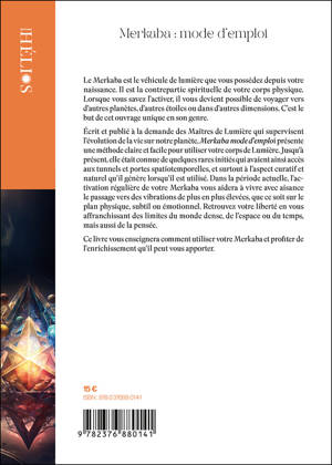 Le Merkaba est le véhicule de lumière que vous possédez depuis votre naissance. Il est la contrepartie spirituelle de votre corps physique. Lorsque vous savez l'activer, il vous devient possible de voyager vers d'autres planètes, d'autres étoiles ou dans d'autres dimensions. C'est le but de cet ouvrage unique en son genre. Écrit et publié à la demande des Maîtres de Lumière qui supervisent l'évolution de la vie sur notre planète, Merkaba mode d'emploi présente une méthode claire et facile pour utiliser votre corps de Lumière. Jusqu'à présent, elle était connue de quelques rares initiés qui avaient ainsi accès aux tunnels et portes spatiotemporelles, et surtout à l'aspect curatif et naturel qu'il génère lorsqu'il est utilisé. Dans la période actuelle, l'activation régulière de votre Merkaba vous aidera à vivre avec aisance le passage vers des vibrations de plus en plus élevées, que ce soit sur le plan physique, subtil ou émotionnel. Retrouvez votre liberté en vous affranchissant des limites du monde dense, de l'espace ou du temps, mais aussi de la pensée. Ce livre vous enseignera comment utiliser votre Merkaba et profiter de l'enrichissement qu'il peut vous apporter.