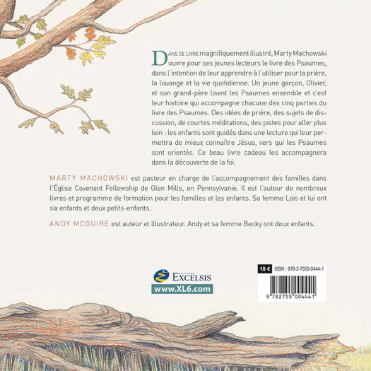 Dans ce livre magnifiquement illustré, Marty Machowski ouvre pour ses jeunes lecteurs le livre des Psaumes, dans l’intention de leur apprendre à l’utiliser pour la prière, la louange et la vie quotidienne. Un jeune garçon, Olivier, et son grand-père lisent les Psaumes ensemble et c’est leur histoire qui accompagne chacune des cinq parties du livre des Psaumes. Des idées de prière, des sujets de discussion, de courtes méditations, des pistes pour aller plus loin : les enfants sont guidés dans une lecture qui leur permettra de mieux connaître Jésus, vers qui les Psaumes sont orientés. Ce beau livre cadeau les accompagnera dans la découverte de la foi.