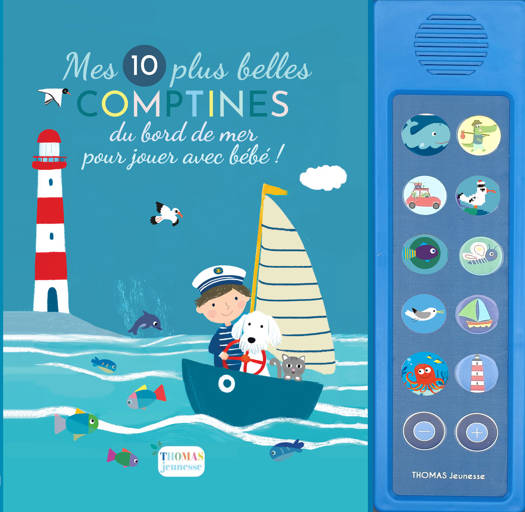 Ce livre sonore de 10 comptines et chansons plonge les tout-petits dans l’univers doux et joyeux de la mer à travers des mélodies intemporelles comme Maman les petits bateaux, Il était un petit navire, Les petits poissons, C’est la baleine, À la pêche aux moules, Ah les crocodiles et bien d’autres.