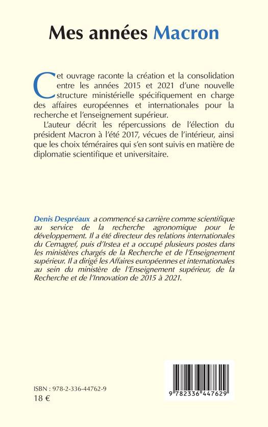 Cet ouvrage raconte la création et la consolidation entre les années 2015 et 2021 d'une nouvelle structure ministérielle spécifiquement en charge des affaires européennes et internationales pour la recherche et l'enseignement supérieur. L'auteur décrit les répercussions de l'élection du président Macron à l'été 2017, vécues de l'intérieur, ainsi que les choix téméraires qui s'en sont suivis en matière de diplomatie scientifique et universitaire.
