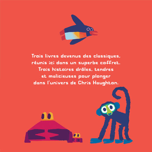 Trois livres devenus des classiques, réunis ici dans un superbe coffret. Trois histoires drôles, tendres et malicieuses pour plonger dans l'univers de Chris Haughton.