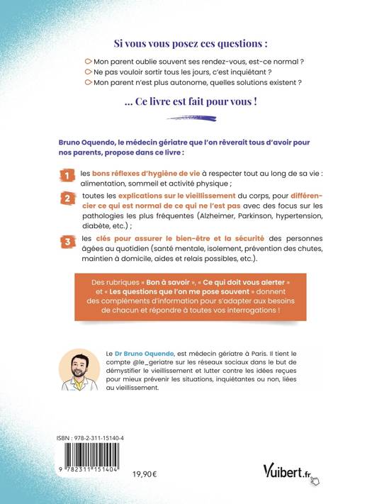 Répondre à ces questions fait partie du métier d’un gériatre, médecin spécialiste de ce phénomène qui nous touche tous : le vieillissement.Le Dr Bruno Oquendo, gériatre et créateur de contenu sur Instagram (@le_gériatre) a souhaité partager dans ce livre toutes les connaissances sur le grand âge et des conseils applicables au quotidien qui permettront à chacun de comprendre ce qui arrive au corps et à l'esprit lorsqu'on prend de l'âge. Car oui, il est possible de bien vieillir !