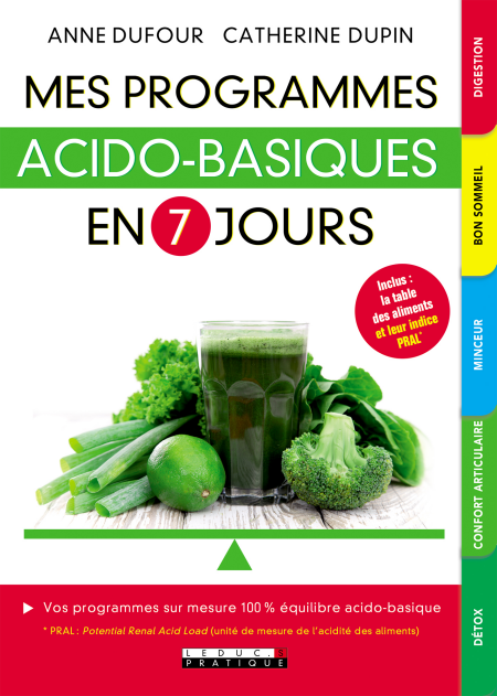 - 5 programmes acido-basiques sur mesure : Digestion, foie, transit + Spasmophilie, bonne humeur, bon sommeil + Minceur, coupe-faim, antifringales + Confort articulaire + Détox.