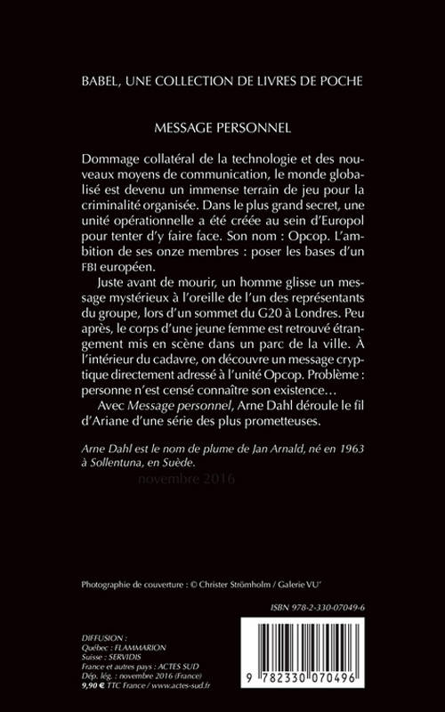 Dans le plus grand secret, une unité destinée à lutter contre le crime organisé au niveau international a été créée au sein d'Europol : le groupe Opcop. Mais le message retrouvé à l'intérieur du corps mutilé d'une jeune femme, étrangement mis en scène dans un parc de Londres, laisse les membres du groupe perplexes car il est directement adressé à l'unité, que personne n'est censé connaître... Le premier volume d'une série de quatre romans.