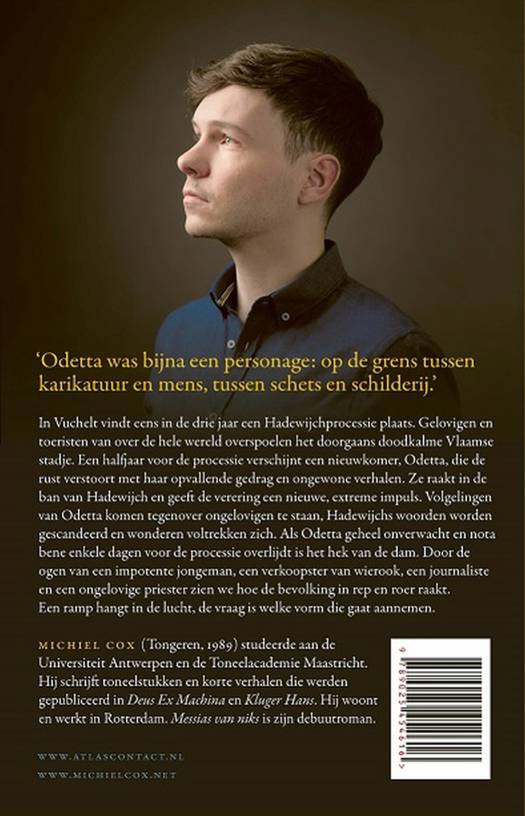 In 'Messias van niks' van Michiel Cox hangt een ramp in de lucht, en de vraag is welke vorm die gaat aannemen. In Vuchelt vindt eens in de drie jaar een Hadewijchprocessie plaats. Gelovigen en toeristen van over de hele wereld overspoelen het doorgaans doodkalme Vlaamse stadje. Een halfjaar voor de processie verschijnt een nieuwkomer, Odetta, die de rust verstoort met haar opvallende gedrag en ongewone verhalen. Ze raakt in de ban van Hadewijch en geeft de verering een nieuwe, extreme impuls. Volgelingen van Odetta komen tegenover ongelovigen te staan, Hadewijchs woorden worden gescandeerd en wonderen voltrekken zich. Als Odetta geheel onverwacht en nota bene enkele dagen voor de processie overlijdt is het hek van de dam. Door de ogen van een impotente jongeman, een verkoopster van wierook, een journaliste en een ongelovige priester zien we hoe de bevolking in rep en roer raakt.
