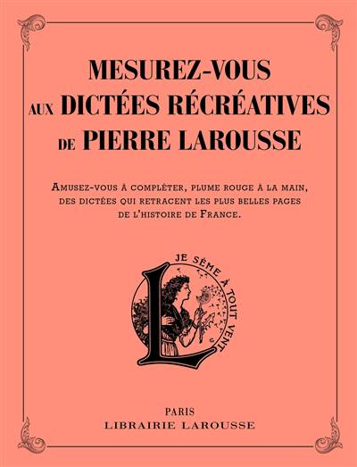 Une cinquantaine de dictées plus espiègles les unes que les autres pour s'amuser à tester son niveau en orthographe tout en redécouvrant les plus grandes pages de notre Histoire de France. Partez à la rencontre de nos ancêtres les Gaulois, de Charlemagne, Clovis, Jeanne et tous les autres grands personnages de l'histoire de France tout en vous mesurant aux célèbres dictées "récréatives" de Monsieur Pierre Larousse !