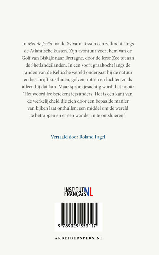 In Met de feeën maakt Sylvain Tesson een zeiltocht langs de Atlantische kusten. Zijn avontuur voert hem van de Golf van Biskaje naar Bretagne, door de Ierse Zee tot aan de Shetlandeilanden. In een soort graaltocht langs de randen van de Keltische wereld ondergaat hij de natuur en beschrijft kustlijnen, golven, rotsen en luchten zoals alleen hij dat kan. Maar sprookjesachtig wordt het nooit: ‘Het woord fee betekent iets anders. Het is een kant van de werkelijkheid die zich door een bepaalde manier van kijken laat onthullen: een middel om de wereld te betrappen en er een wonder in te ontsluieren.’