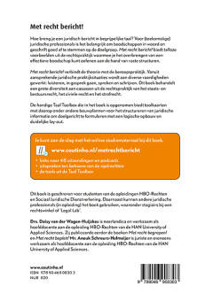 Hoe breng je een juridisch bericht in begrijpelijke taal? Voor (toekomstige) juridische professionals is het belangrijk om boodschappen in woord en geschrift goed af te stemmen op de doelgroep. De uitgave Met recht bericht! biedt talloze voorbeelden uit de rechtspraktijk waarmee studenten het effectief overbrengen van een boodschap kunnen oefenen aan de hand van vaste structuren.