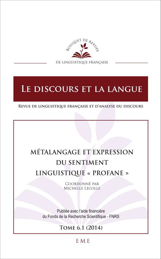 4. Métalangage et expression du sentiment linguistique "profane" - Le discours et la langue
