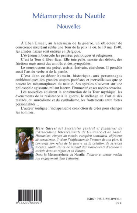 A Eben Emael, au lendemain de la guerre, un objecteur de conscience mécréant édifie une Tour de la paix là où, le 10 mai 1940, les armées nazies sont entrées en Belgique. C'est la Tour d'Eben-Ezer. Elle interpelle, suscite des débats, des frictions mais aussi des amitiés et des sympathies. C'est dans ce décor humain, historique, aux personnages emblématiques des grandes utopies pacifistes et merveilleuses que se nouent les métamorphoses du nautile.
