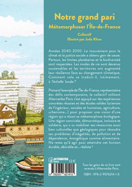Années 2040-2050. Le mouvement pour le climat et la justice sociale a obtenu gain de cause. Partout, les limites planétaires et la biodiversité sont respectées. Les modes de vie sont devenus soutenables et les territoires ont augmenté leur résilience face au changement climatique. Comment cela se traduit-il, intimement, à l'échelle locale? Prenant l'exemple de l'Île-de-France, représentative des défis contemporains, le collectif militant Alternatiba Paris s'est appuyé sur des expériences concrètes réussies et des études solides (sciences de l'ingénieur, sociales et humaines, agriculture, urbanisme...) pour proposer une vision d'une Île-de-France qui a réussi sa métamorphose écologique. Qui a su mobiliser ses ressources culturelles et géologiques pour résoudre ses problèmes d'inégalités, de pollution et de dépendance énergétique et alimentaire, comme pourraient le faire d'autres régions. Ne reste qu'à agir pour atteindre cet horizon durable, désirable et... réaliste !