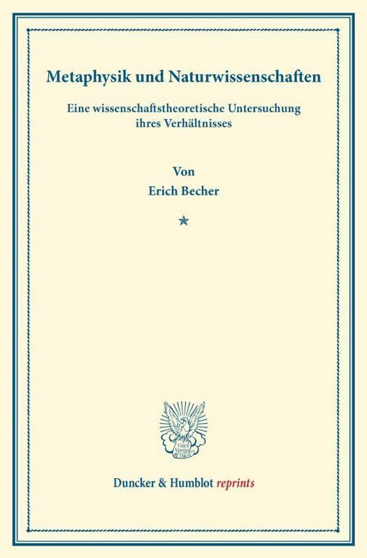 Becher untersucht in seiner Abhandlung auf wissenschaftstheoretischer Basis das Verhältnis von Metaphysik und Naturwissenschaft. Die Naturwissenschaften sind für ihn "Partialrealwissenschaften von körperlichen Gegenständen", während das "Gesamtwirkliche" den Gegenstand der Metaphysik bildet. Er schildert den engen Zusammenhang beider Begriffe seit den Anfängen der Philosophie des alten Griechenlands. Becher vergleicht sodann Gegenstände, Methoden und Erkenntnisgrundlagen der Naturwissenschaften und der Metaphysik. Er kommt zu dem Ergebnis, dass "nicht feindselige Trennung, sondern anregende und fördernde nachbarliche Freundschaft" das Verhältnis der beiden Disziplinen prägt.