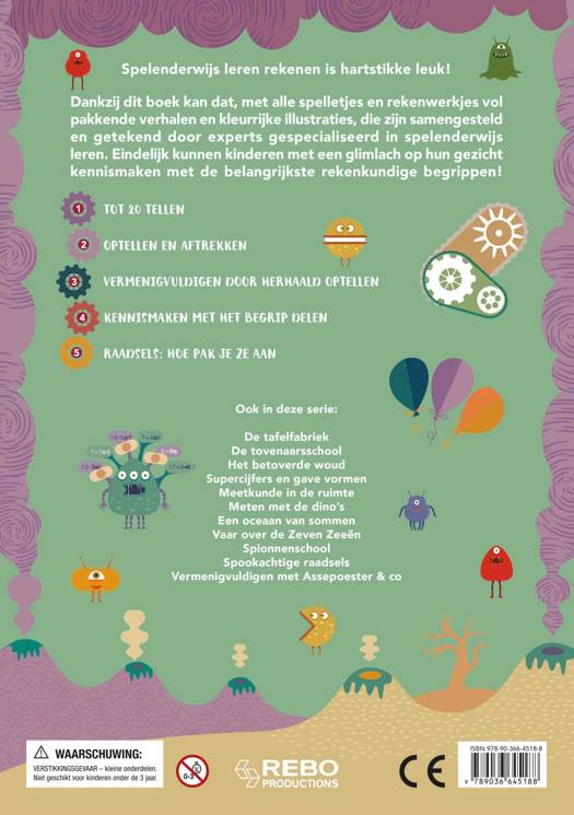 Spelenderwijs leren rekenen is hartstikke leuk! Dankzij dit boek kan dat, met alle spelletjes en rekenwerkjes vol pakkende verhalen en kleurrijke illustraties, die zijn samengesteld en getekend door experts gespecialiseerd in spelenderwijs leren. Eindelijk kunnen kinderen met een glimlach op hun gezicht kennismaken met de belangrijkste rekenkundige begrippen!